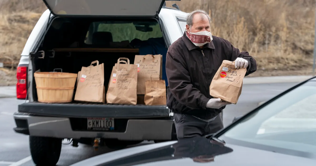 She’s been working with local and state health authorities to make the transfer of food as safe as possible. Customers order and pay ahead of time, then pull into the lot at Garver Feed Mill at a designated time, and vendors run their pre-ordered produce to the car.