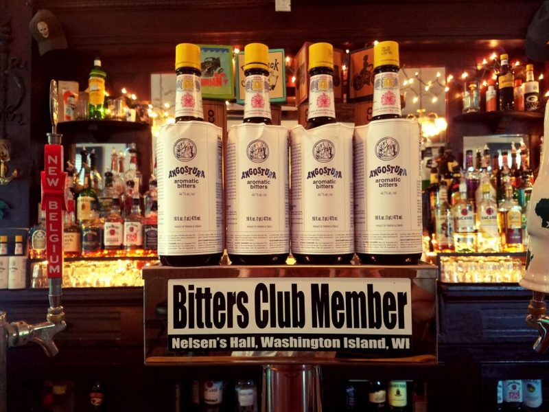 Tom Nelsen, who ran Nelsen’s Hall & Bitters Club on Washington Island, remembered seeing bitters for sale at the local drug store in Sturgeon Bay, mainly to treat stomach problems. So, he applied for (and received) a pharmacist’s license, solely for the purpose of dispensing medicinal alcohol.