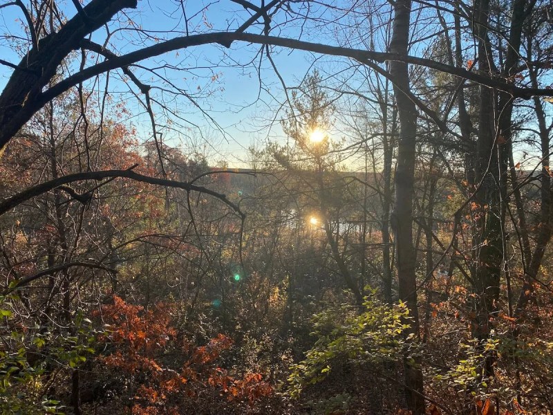 Shortly after taking one of the trails, following my friend, I realized this spot was more scenic than I would have guessed. A mix of hardwood and softwood trees, along with underbrush, lined both sides of the path. While most trees had dropped their fall plumage by this early November day, some still clung to shades of yellow, orange, red, rust, and brown, seemingly reluctant to give up their leaves and acknowledge the approaching winter.