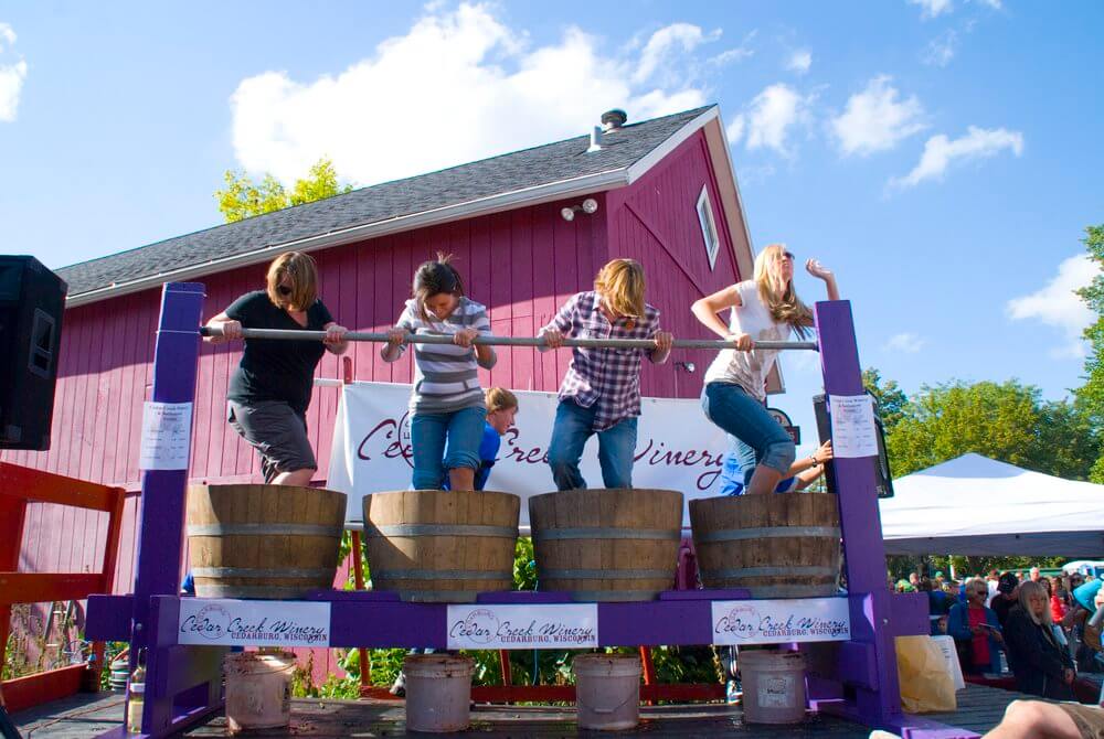 Most Wisconsin wineries are open year-round, but if you’d like to experience wine harvest season, plan a trip in late summer or early fall. Not only is the weather pretty much perfect for sipping a glass of wine, but fall is when many wineries host harvest festivals, with fun traditions like grape stomping!