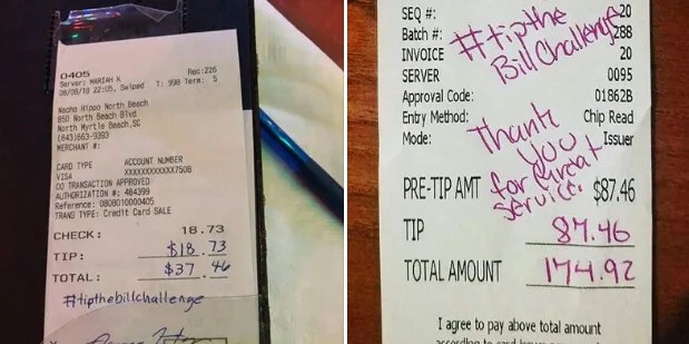 If that seems like a shocking percentage, that’s the point. The challenge started circulating on social media in 2018 to call attention to the fact that minimum wage for restaurant workers is significantly less than the standard minimum wage. Many servers rely on tips to pay their bills… so when diners skimp on the bill without a second thought, it can have huge financial repercussions.