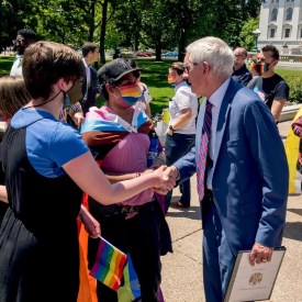 In flag-raising ceremony, Evers also signed executive orders to ban state money in “conversion therapy” and ensure inclusive language in state documents.