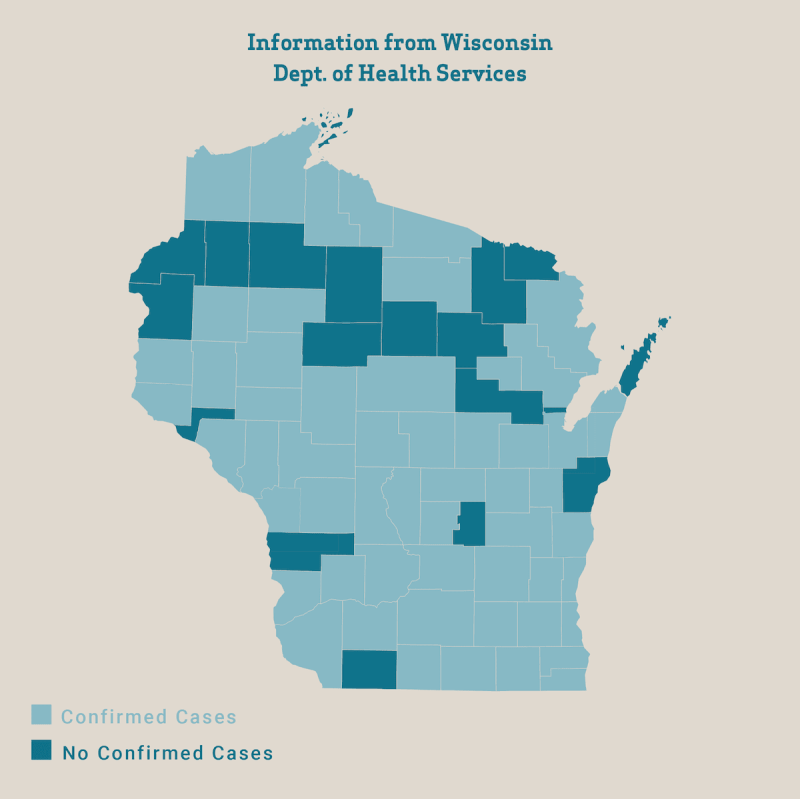 As the number of cases now is spreading to the central and northern portions of the state, the largest clusters of positive cases continue to be in Milwaukee and Dane counties, with 1,323 and 289 cases, respectively.
