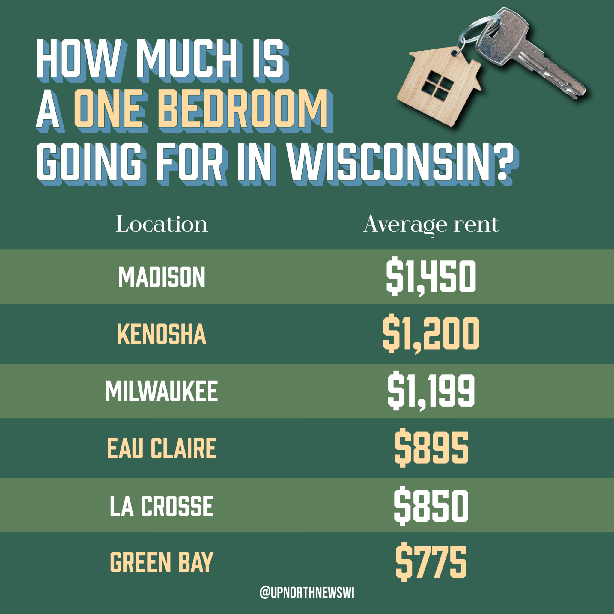 Here’s how much the average renter is paying for a one-bedroom apartment in Wisconsin’s six biggest cities, according to data from Zumper.