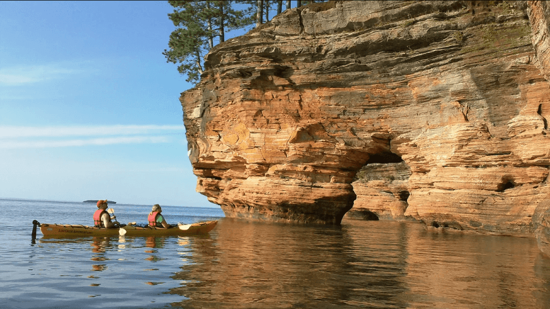 In the winter, the caves that line the peninsula about 18 miles west of Bayfield become the ice caves, a literal fairyland of icicles that make each chamber unique. But warm winters have meant that access to the ice caves over frozen Lake Superior doesn’t happen most years. The best time to see them is summer, via sea kayak. Lost Creek Adventures in Cornucopia offers tours and rentals, or you can bring your own kayak and launch from Meyer’s Beach, a National Lakeshore property just east of Cornucopia. Be prepared for a ranger to check over your boat to make sure it’s seaworthy for the 3-mile round trip on ever-changing Lake Superior. No inflatables or sit-on kayaks are allowed and you must have floatation equipment.