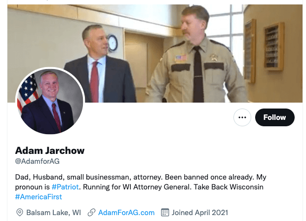 Former state Rep. Adam Jarchow is a prolific tweeter and Trump critic, but you’d never know from his account now.