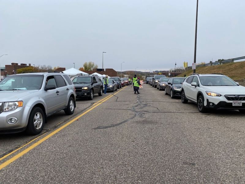Vehicles lined both sides of a street just outside of Eau Claire City Hall and filled a nearby parking lot Tuesday morning, a sign that early in-person voting will be a popular way to cast ballots in Wisconsin for the Nov. 3 presidential election.