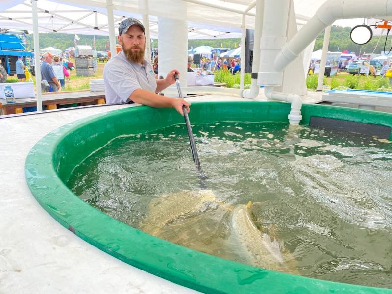 “Look at that. There it is,” Brandt, assistant aquaculture manager for Superior Fresh, a business near Hixton that raises the salmon and organic greens, told a young girl and her parents on the other side of a pool of water set up at the company’s exhibit as part of this year’s Wisconsin Farm Technology Days at Huntsinger Farms south of Eau Claire.