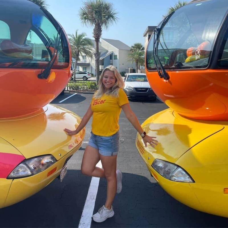 I actually never knew that being a Frankfurter was a “legit” job growing up—it seemed too good to be true! I first came across the job during my senior year of college at the University of Wisconsin-Madison. Oscar Mayer recruits at a number of universities across the country, and UW-Madison was one of them.