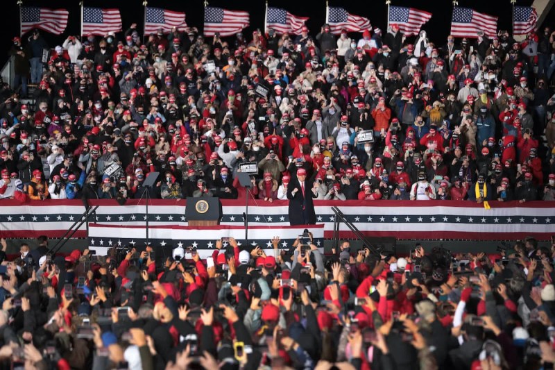 A maskless President Donald Trump stood before several thousand supporters in Janesville Saturday night declaring the country is “rounding the corner” in tackling the COVID-10 pandemic despite every indicator across Wisconsin—new cases, hospitalizations, school closings, and deaths—screaming otherwise.