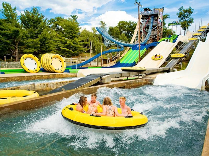 Chula Vista Resort is your classic waterpark, open year-round with both indoor and outdoor options. Chula’s 1.5 miles worth of slides offer a little bit of everything–from straight drops and extreme loops to family-friendly raft rides. Rainbow Rapids, the park’s newest slide, is basically a light show and slide all in one.