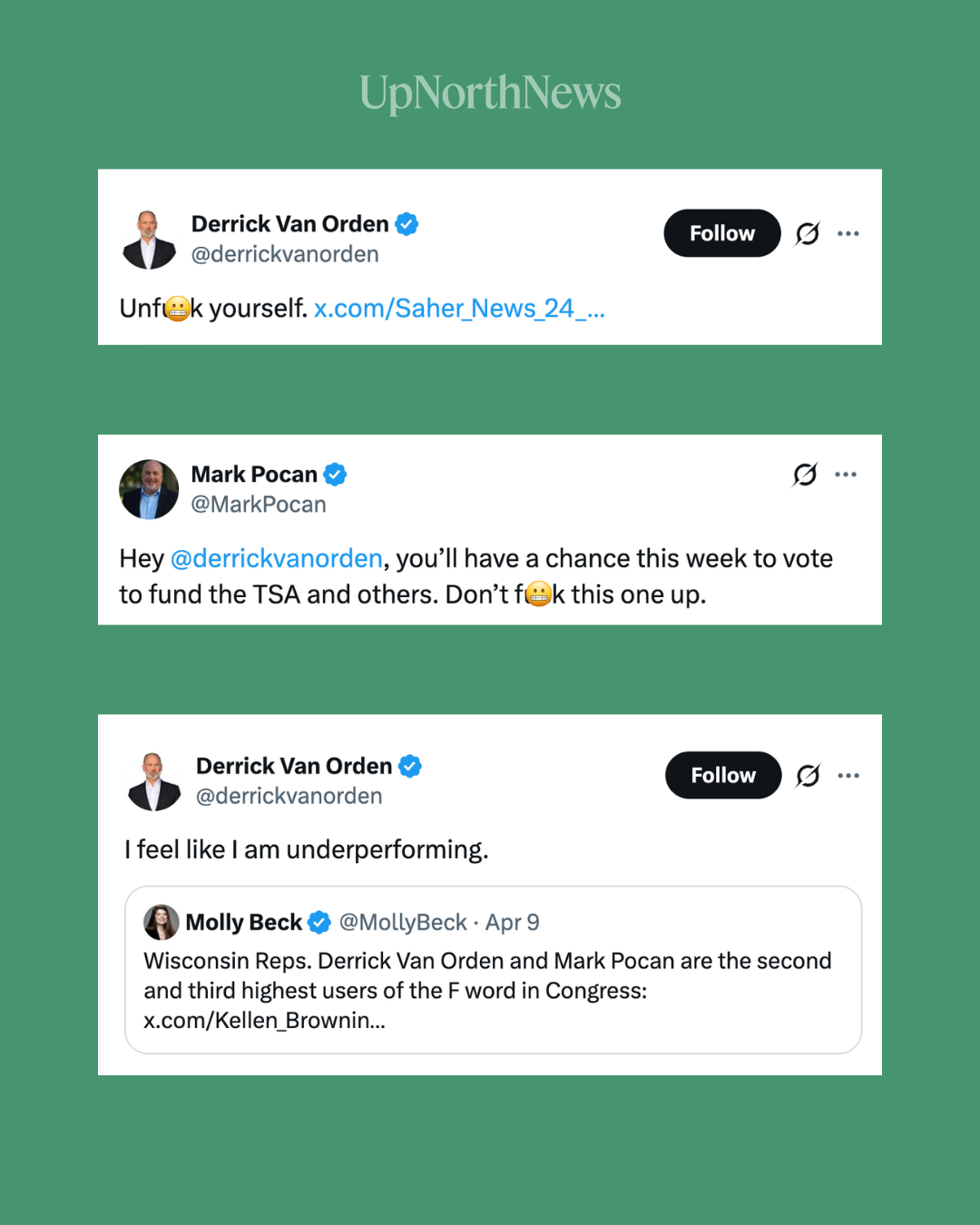 In the age of social media, we have characters like Rep. Derrick Van Orden (R-🖕🏼), who thinks cursing makes him look cool. Fortunately for Wisconsin, Van Orden’s bullying and barnyard vocabulary have found a match in Rep. Mark Pocan, who can go toe-to-toe with tweets, as evidenced by a new survey of social media usage by members of Congress.