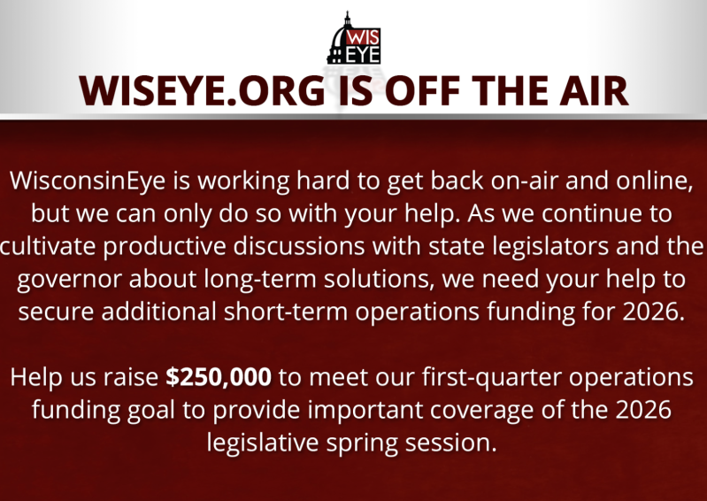 🤝 Fortunately, Republican Assembly Speaker Robin Vos and Democratic Leader Greta Neubauer have reached an agreement to partially fund WisEye and get it back on the air. Now we wait to see if Senate Republicans will go along.